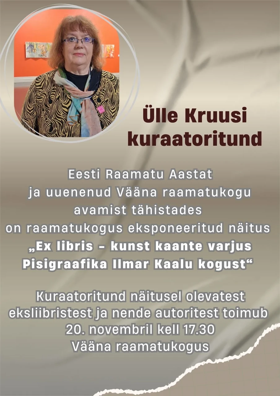 Kuraatoritund näitusel olevatest eksliibristest ja nende autoritest toimub 20. novembril kell 17.30 Vääna raamatukogus.