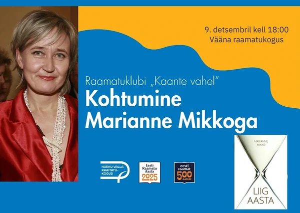 9. detsembril kell 18.00 toimub Vääna raamatukogus raamatuklubi "Kaante vahel" sarja raames kohtumine Marianne Mikkoga.Lugemisklubi raamatuks on Marianne Mikko „Liig aasta“, mis on ajendatud ühest lahkumisest. Ehkki surmateema on fotopäeviku selgroog, on kaante vahel ka päris naljakaid hetki nii sõnas kui pildis. On kurbust ja rõõmu nagu ka mõtisklusi elu ja ilma üle. „Liig aastat“ võib pidada inspiratsiooniraamatuks, mille põhipaatos on kahtlemata elujaatus.
