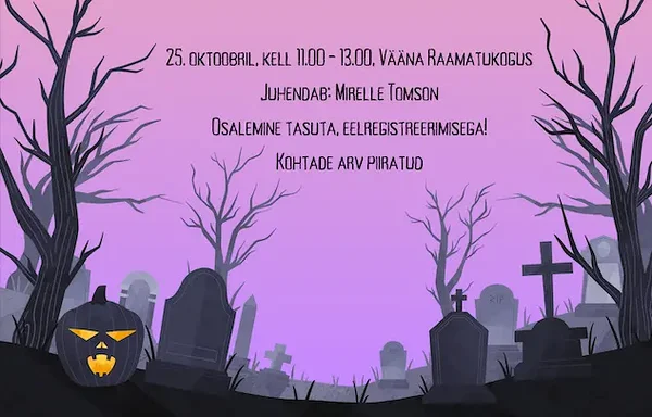 25. oktoobril kell 11 toimub Vääna raamatukogus vahva halloweeni-teemaline töötuba. Tule koos meiega meisterdama!LISAINFO