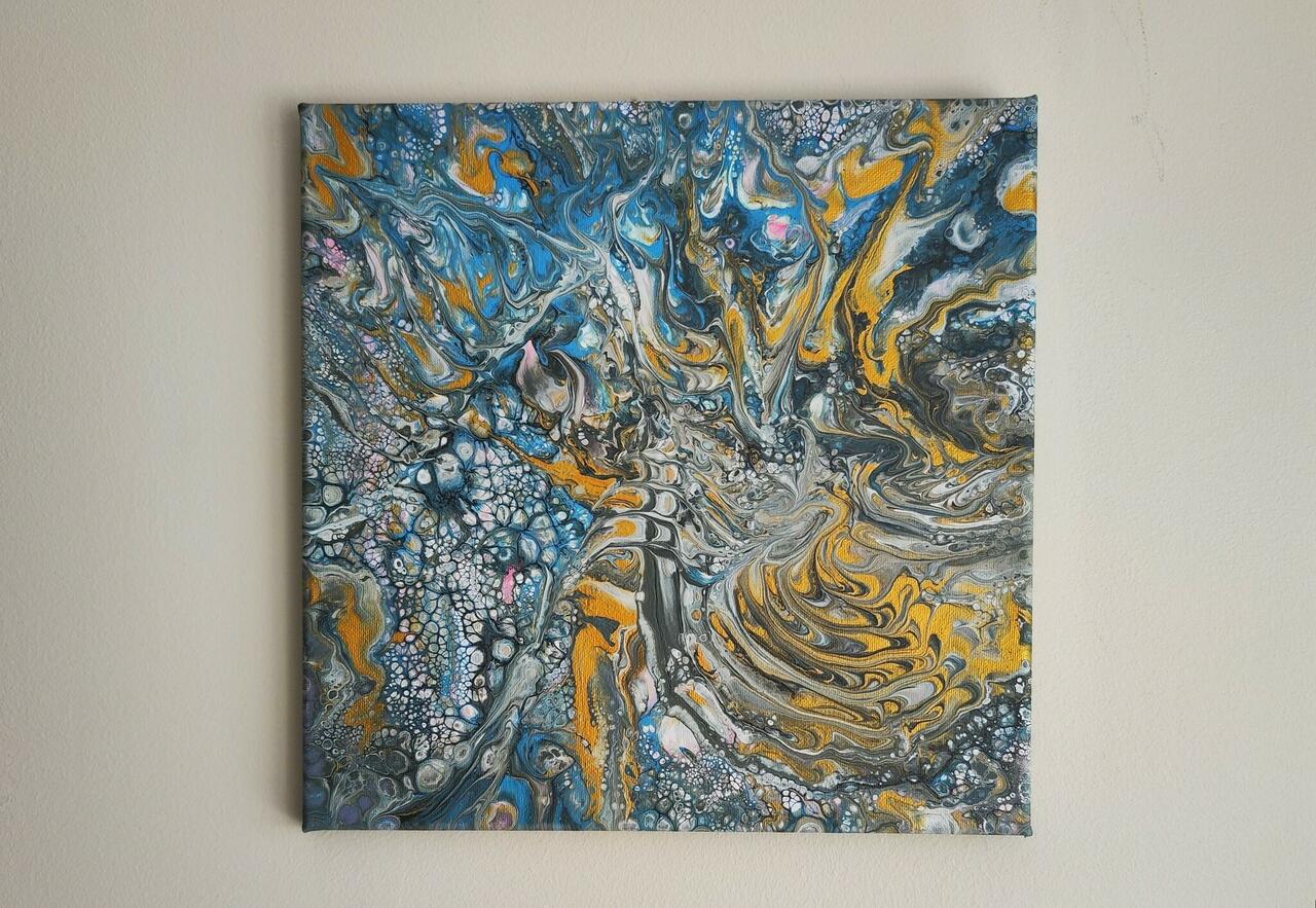 Ühel lõuendil saavad kokku mänglevad värvid, hing ja lugu. Ene Orumaa on hobikunstnik, kes väljendab end värvide kaudu. Ta alustas valamistehnikas akrüülmaalide valmistamisega käesoleva aasta alguses ja nüüdseks on valminud hulk töid, mida kunstnik soovib jagada teistega. Tegemist on autori esmakordse oma tööde väljapanekuga.