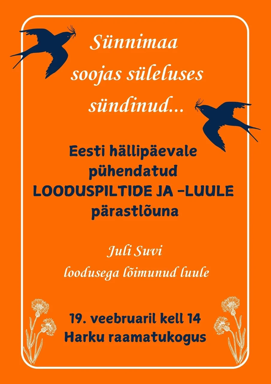 19. veebruaril kell 14:00 toimub Harku raamatukogu seltsitoas Juli Suvi luuleraamatu esitlus.