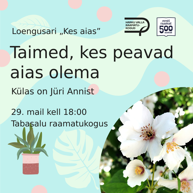 "Aiataimed võib nende otstarbe järgi jaotada gruppidesse. Loengus pakun välja iga taimegrupi parima(d) esindaja(d). Üle saavad vaadatud taimepriimuste kasvunõuded ja hooldusvõtted," tutvustab järgmist loengut Jüri Annist.