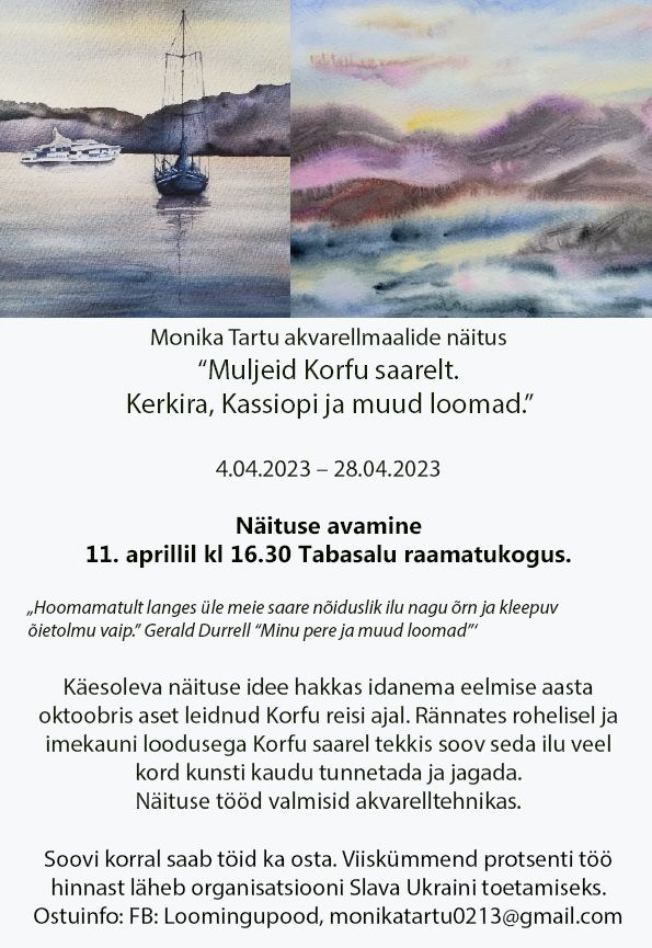 Näituse avamine11. aprillil kl 16.30 Tabasalu raamatukogus
