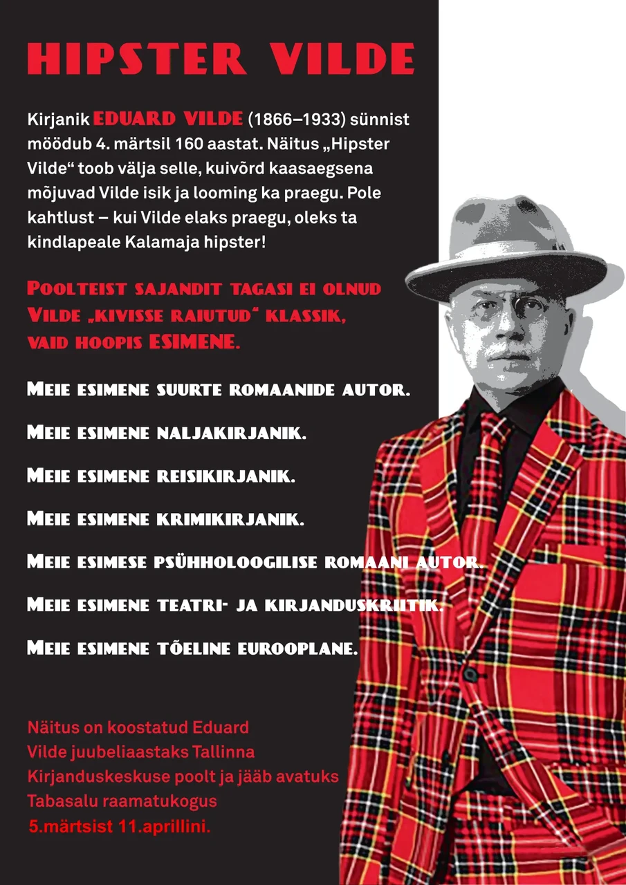 Näitus “Hispster Vilde” toob välja selle, kuivõrd kaasaegsena mõjuvad Vilde isik ja looming ka praegu. Pole kahtlust – kui Vilde elaks praegu, oleks ta kindlapeale Kalamaja hipster!