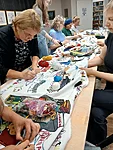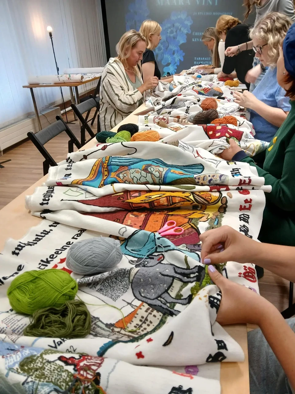 Noored ja vanad, oskajad ja algajad. Kohal on inimene, kes vajadusel tikkimist juhendab. Tikandi pildid on kangale ette trükitud, mis teeb tikkimise hõlpsamaks. Tikkimise vahendid, nõelad, käärid niidid jms. on kangaga kaasas.