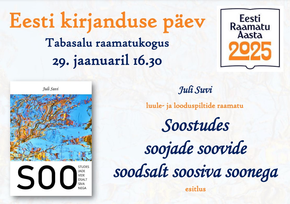 Juli Suvi luule- ja looduspiltide raamatu „Soostudes soojade soovide soodsalt soosiva soonega“ esitlus