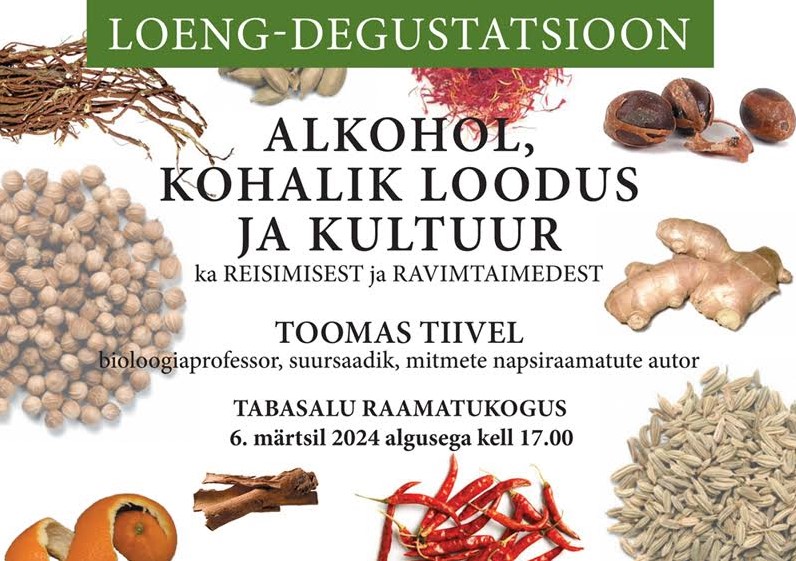 6. märtsil 2024 algusega kell 17.00 toimub Tabasalu raamatukogus bioloogiaprofessori, suursaadiku ning mitmete napsiraamatute autori Toomas Tiiveli juhendamisel loeng alkoholist, kohalikust loodusest, ravimtaimedest ja kultuurist. Üht-teist on võimalik ka degusteerida.