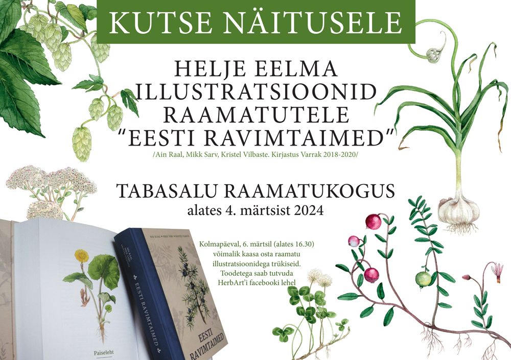 Tabasalu raamatukogus avati 4. märtsil 2024 Helje Eelma akvarellide näitus Eesti ravimtaimedest.