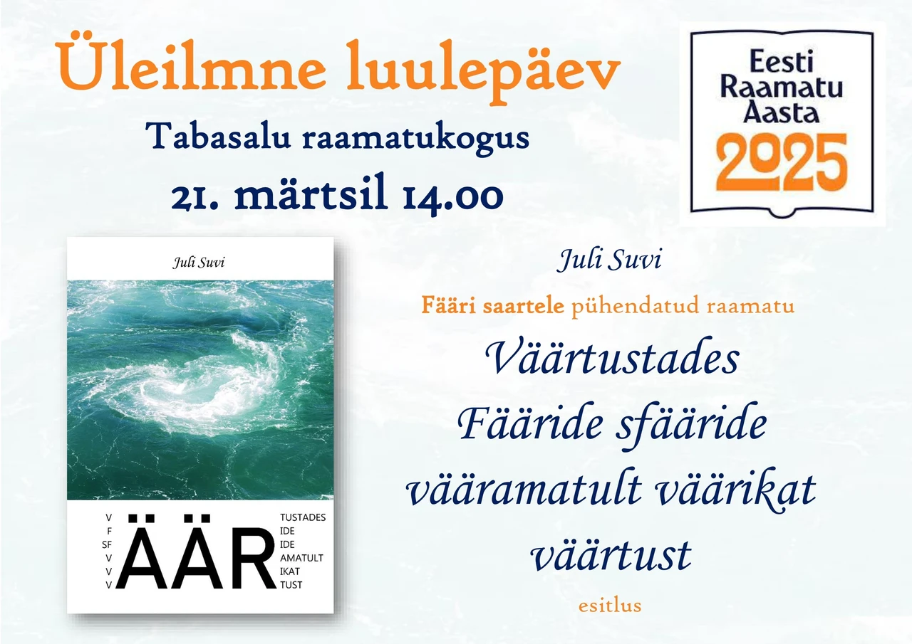 Üleilmse luulepäeva raames toimub 21. märtsil kell 14:00 Tabasalu raamatukogus Juli Suvi raamatuesitlus. Targad ei taibanud,totakad seda enam,