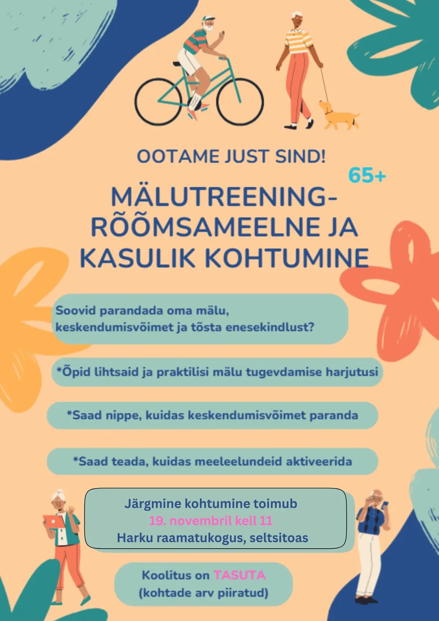Eesti vanemaealiste mälu treenerite ühenduse MTÜ 65B ja EURAG Memory Training Center mälutreenerite pakutav rõõmsameelne ja kasulik mälutreeningu kursus.